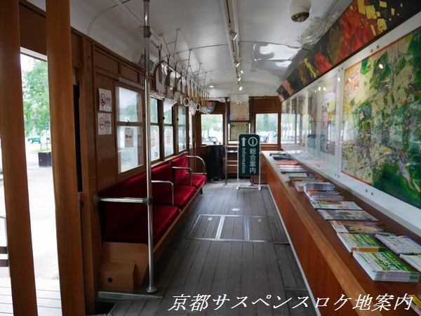 一瞬映った市電車両は2015年(平成27)に開設された、もと京都市電1800形1860号車を利用した観光案内所「岡崎・市電コンシェルジュ」です。大宮交通公園からここに移設されたもので、車中には各種言語の京都案内やイベントのペーパー類が置かれて、観光客にとって大変ありがたい情報収集の場兼休憩所でした。